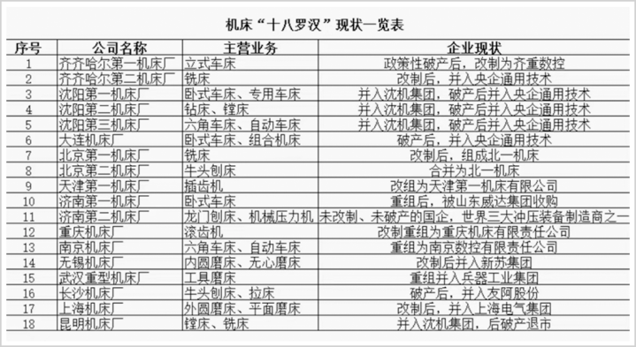 新中国机床产业的发展始于“一五”期间,可以说是最早被重视与支持的产业。在百废待兴的当时,就由其时的一机部二局(机床局)直辖统御,构建了一个由18家重点国企(“十八罗汉”)、8家科研院所(“七院一所”)组成的机床工业体系。